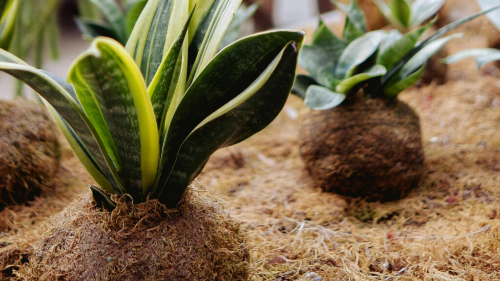 - Suculentas como Echeveria o pequeños cactus, perfectos si buscas una kokedama de bajo mantenimiento.